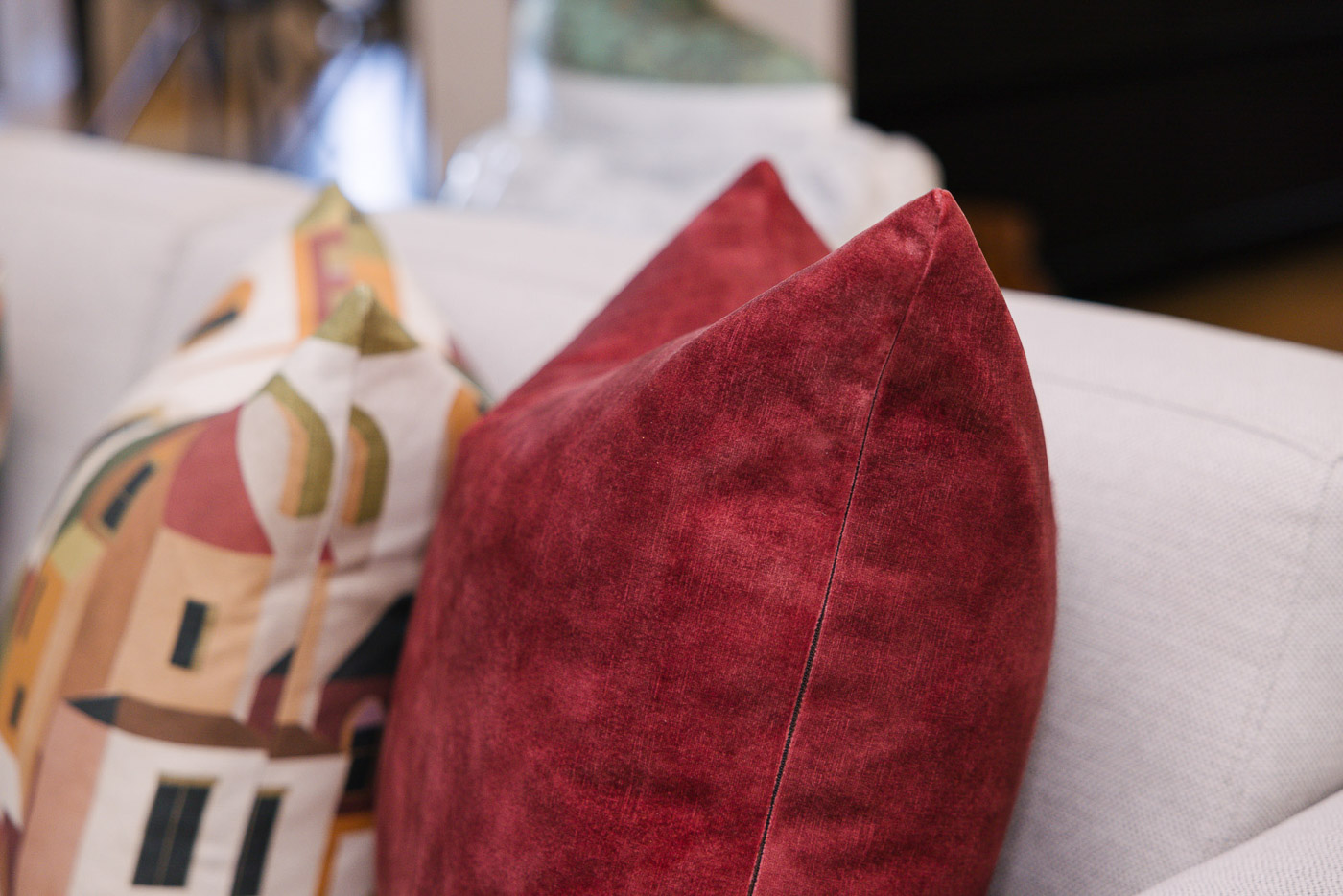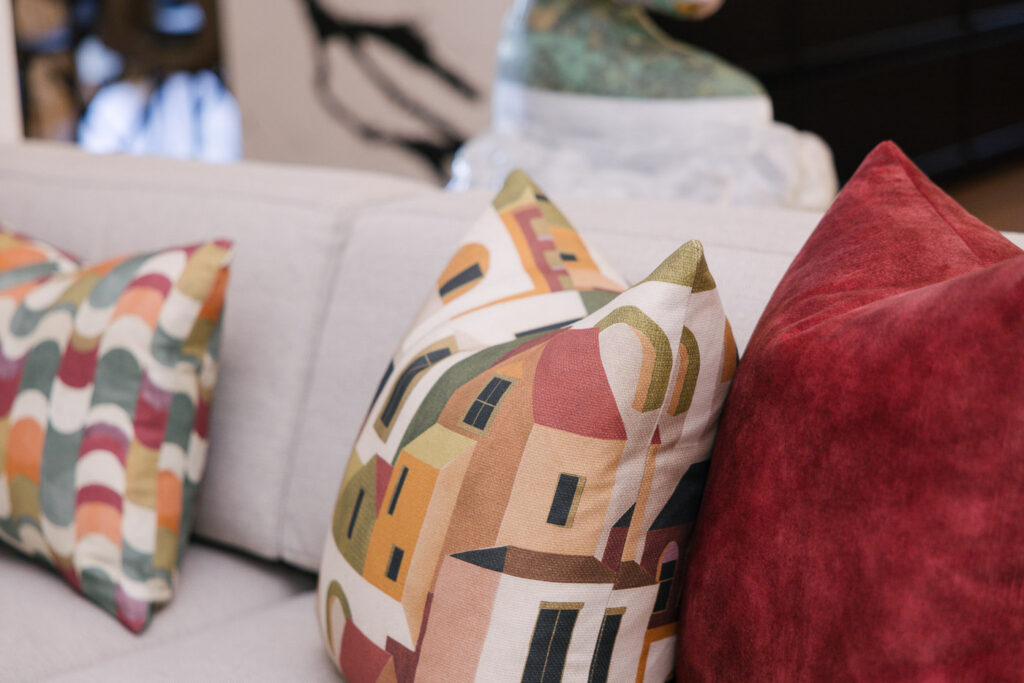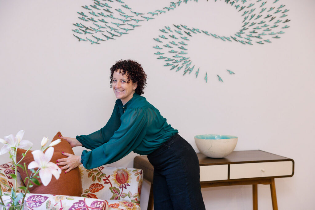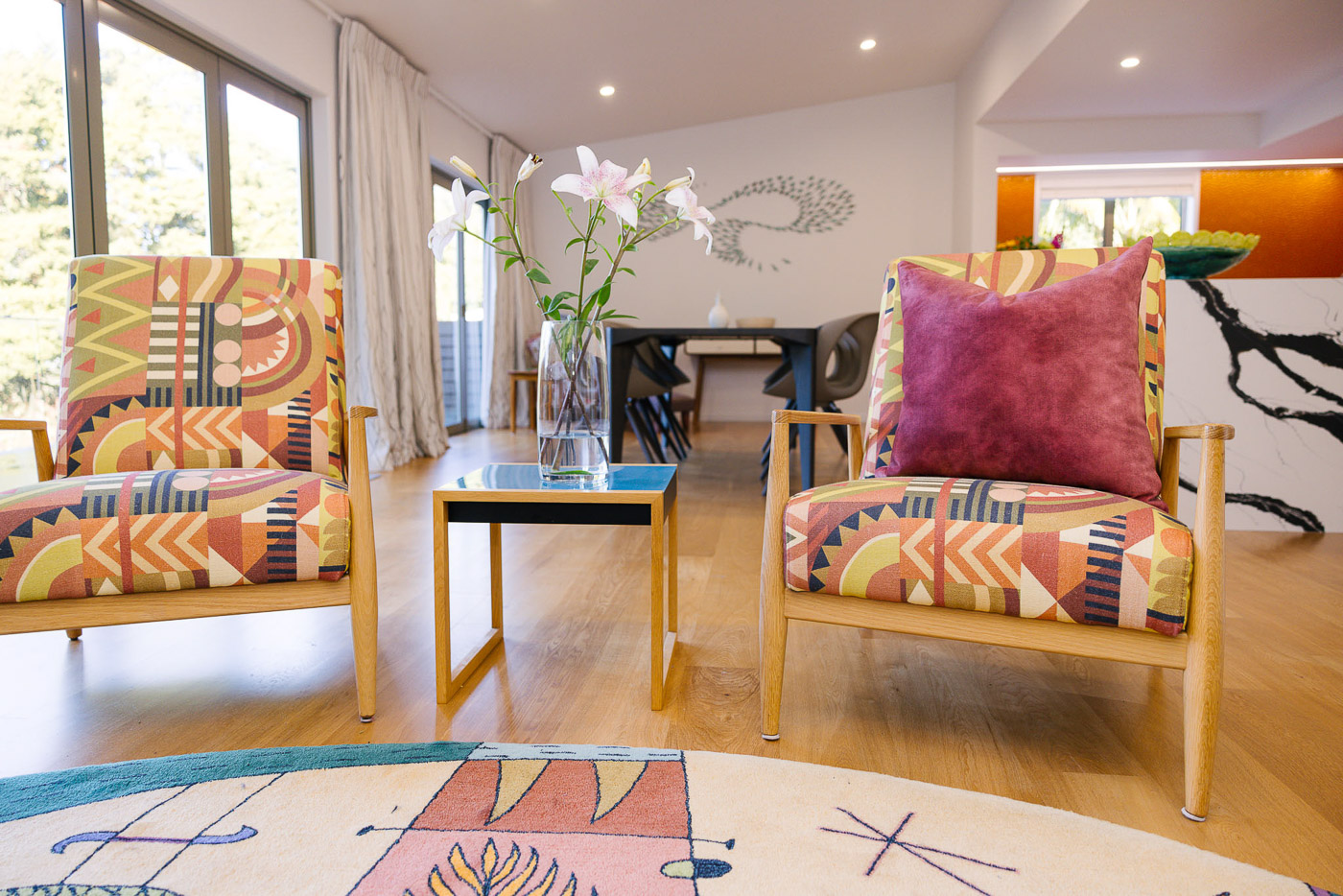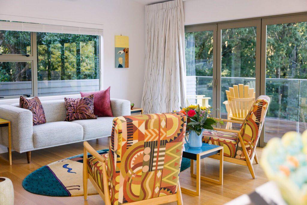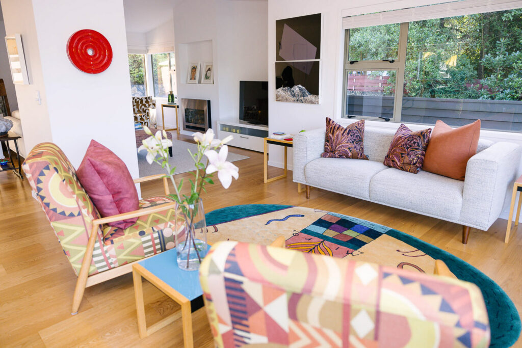 Incorporating existing pieces was an important part of the brief — including a treasured rug, colourful side tables, and an impressive art collection. New dining and lounge furniture was specified and sourced, custom curtains were manufactured, beloved pieces were reupholstered, and each space was finished with thoughtfully selected rugs and bespoke cushions.