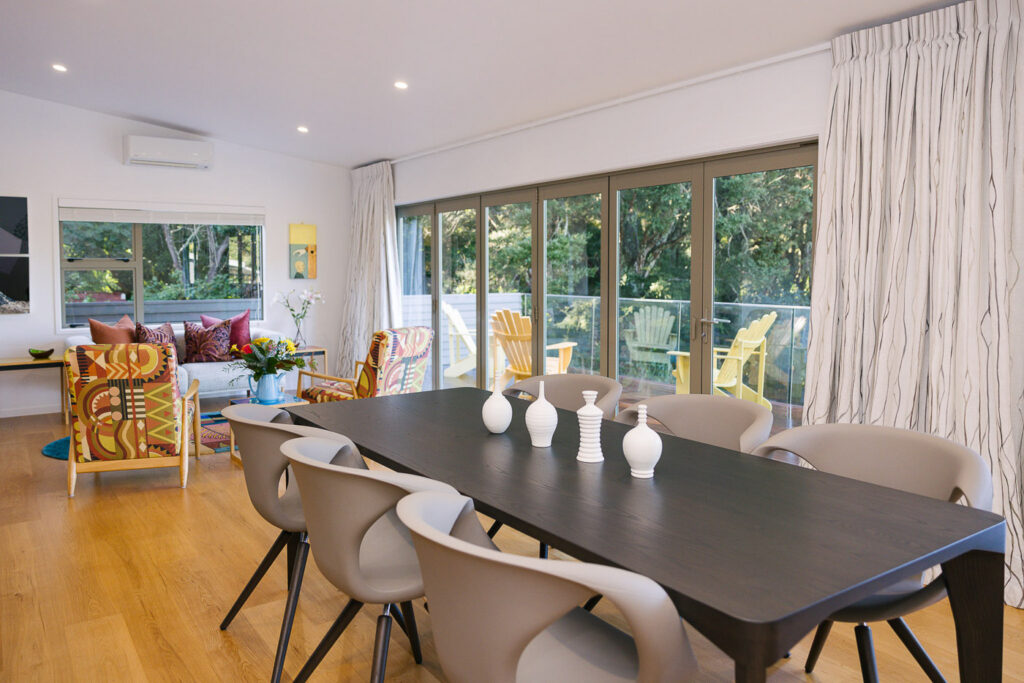 After relocating from Wellington, these clients wanted their new Whangārei home to embrace its lush bush setting — a clear departure from the beach-inspired palette of their previous space. Mid-renovation and feeling unsure how to bring everything together, they engaged AGD to create a cohesive scheme across the open-plan living areas.