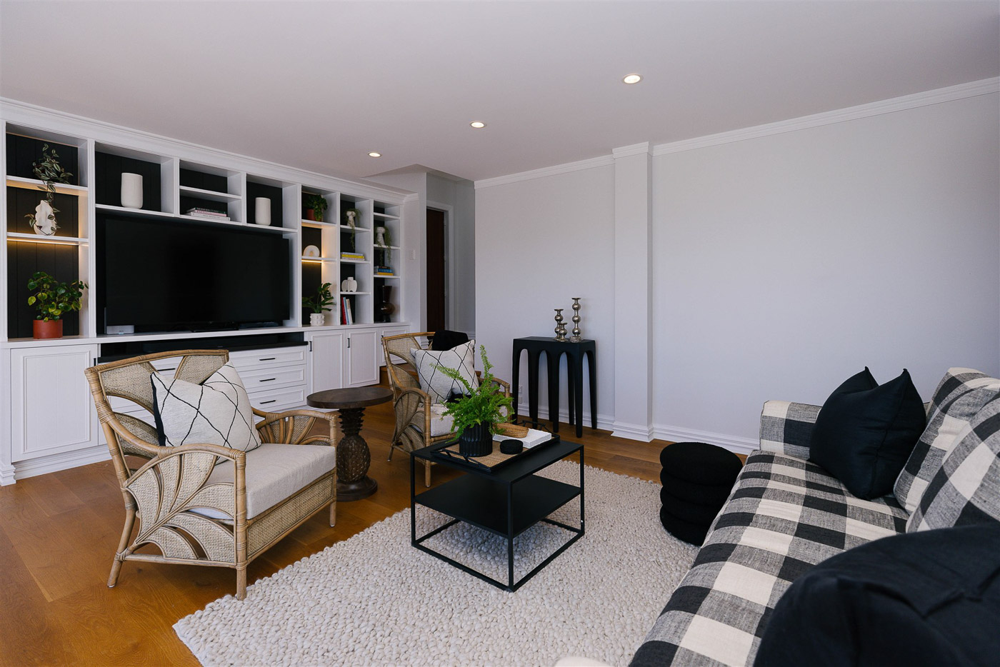 These out-of-town clients engaged Anna Grace Design prior to settlement on their newly purchased holiday home, seeking guidance on colours, window treatments, and furnishings in a “Hamptons with a twist” style.